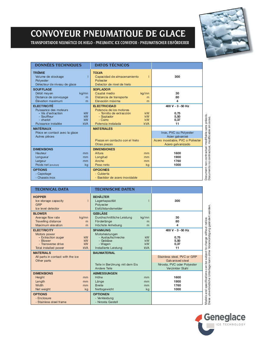 - Geneglace has developed its range for a complete management of flake ice: production, storage, conveying, weighing and delivery thanks to :